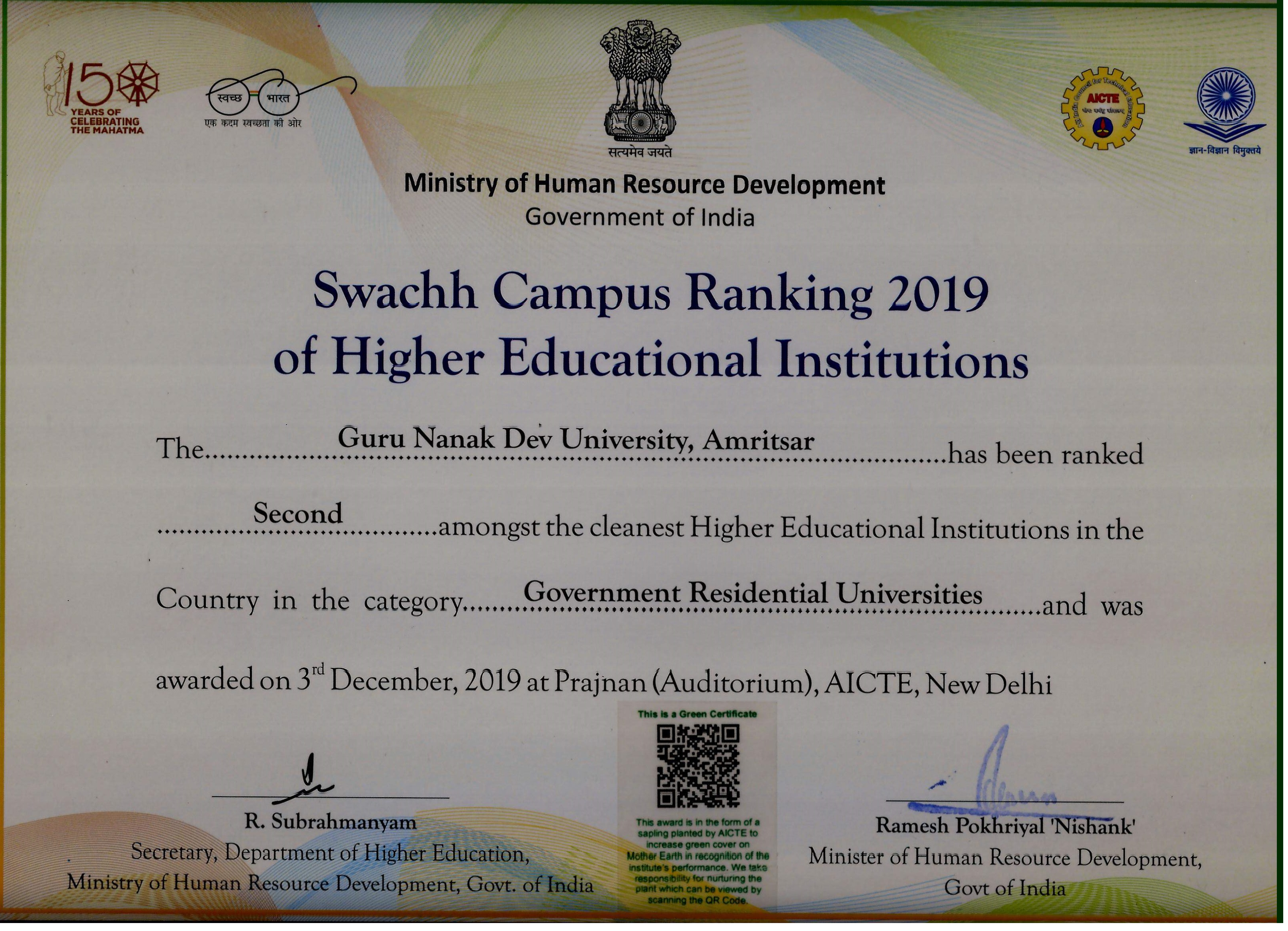 Guru Nanak Dev University has won India's prestigious "Maulana Abul Kalam