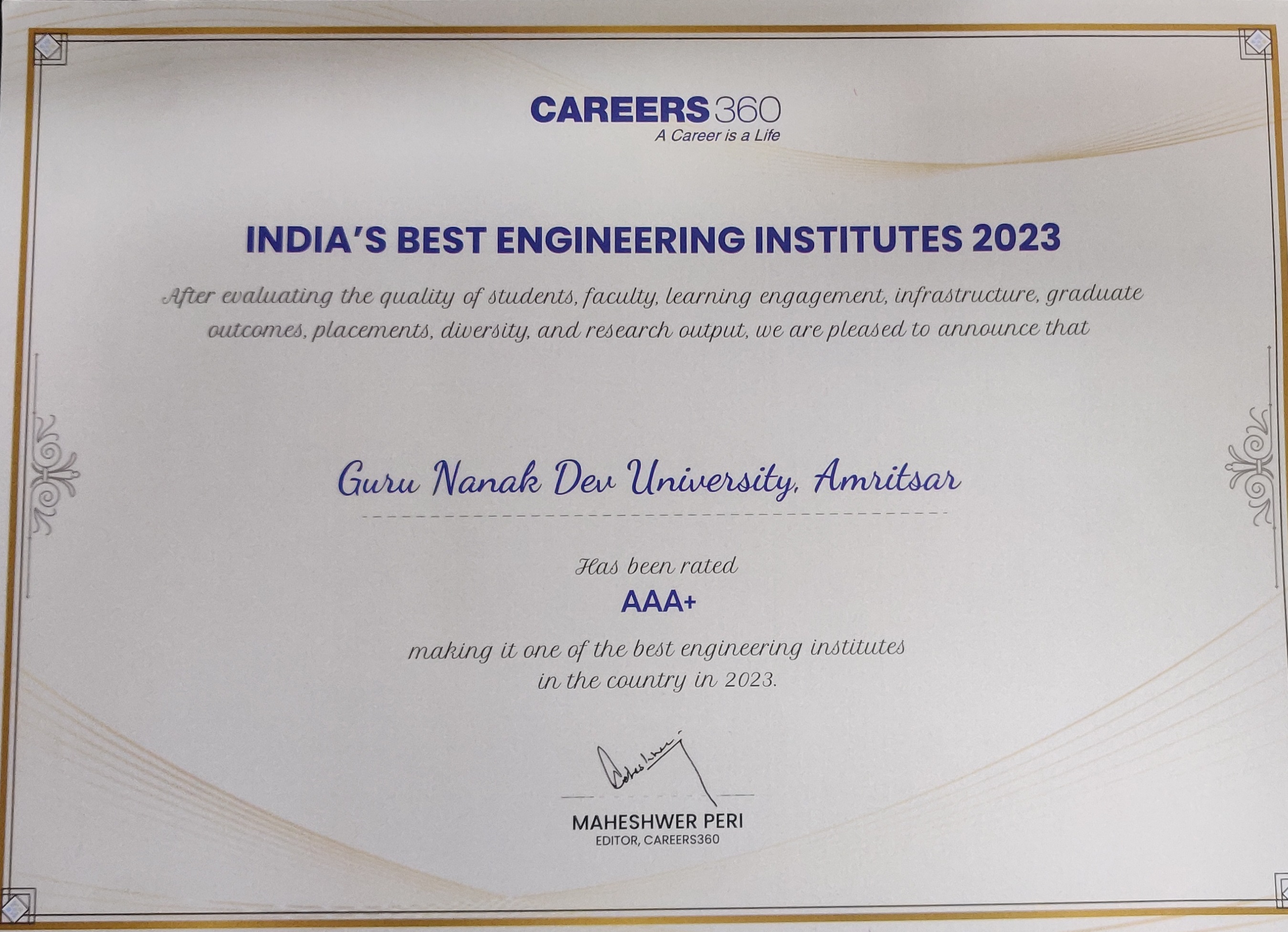 Guru Nanak Dev University is the only “Category-I” University in Punjab
