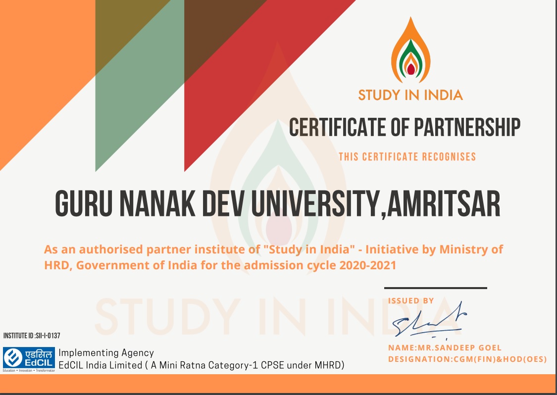 Guru Nanak Dev University, Amritsar signed MoU to establish the Sardar Nanak